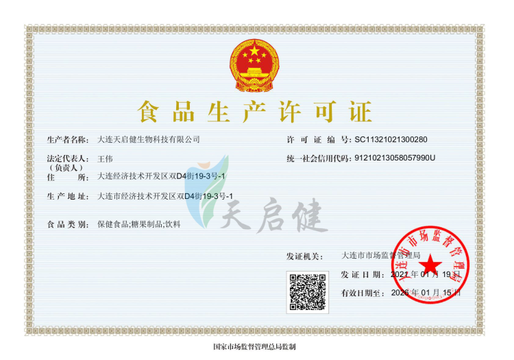 大連天啟健生物科技有限公司創(chuàng)建于2012年,是一家專業(yè)從事食品、保健食品的研發(fā)、生產和銷售的企業(yè)。